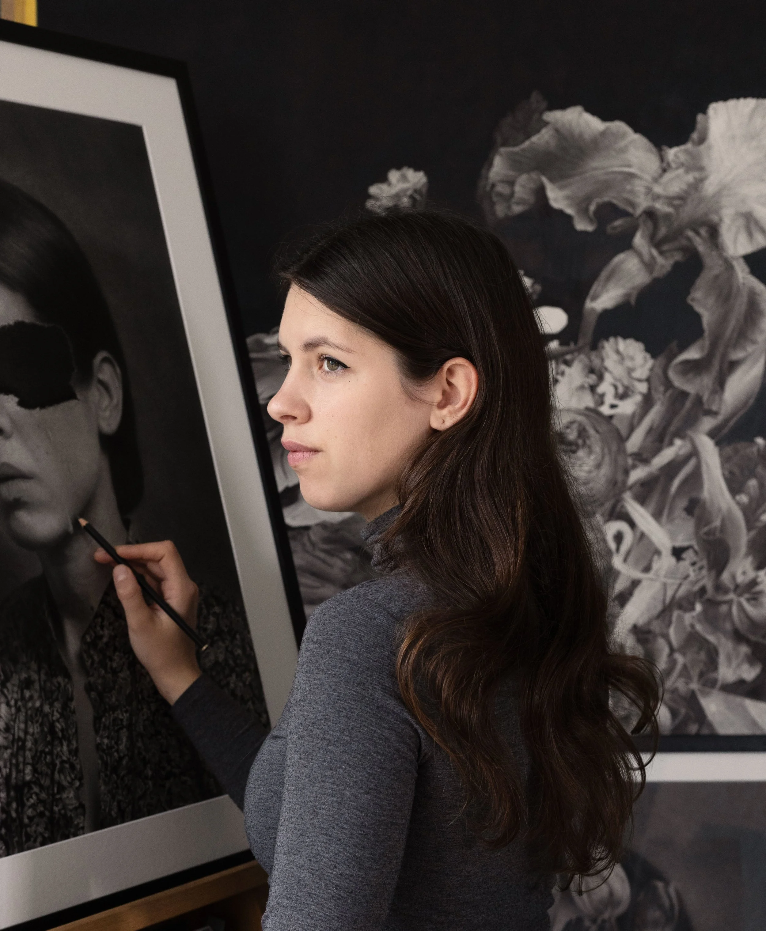 pencil drawings. Working through surrealist selfportraiture, she draws from her own image and